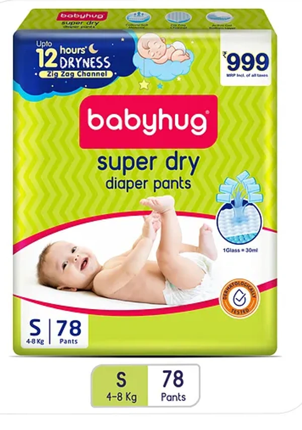 Baby hug Super Dry Pant Style Diapers Small (S) Size - 78 Pieces