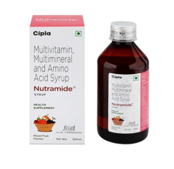 Cipla Kids Nutramide Syrup Mixed Fruit is a combination of key nutrients that help strengthen the immune system. It helps with several immune deficiency disorders.